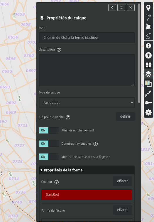 • dans les « Propriétés de la forme », choisi rune couleur, un type de pointeur (icône)