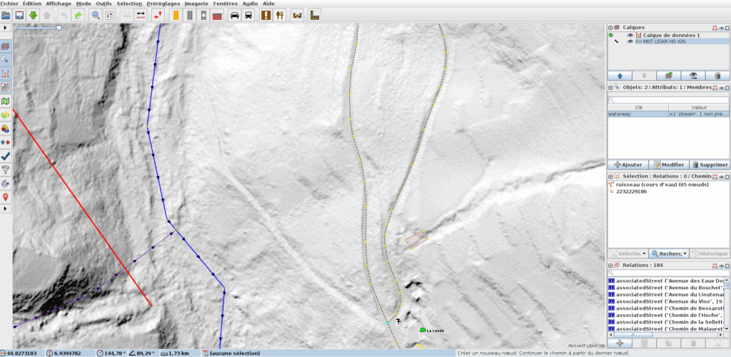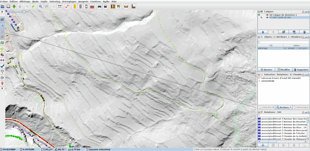 Ce sujet provient d’une question datafouilleuse 💡de Christian Quest à propos de Photo-cartographier les chemins ruraux perdus : mais tu ne prépares pas ta sortie avant ? 🫢 En moins de temps qu’il ne le faut pour le dire, il a affiché des Modèles Numériques de Terrain à partir du LIDAR HD de l’IGN. Je pensais que ce type de produit était réservé aux experts cartographes dont je ne suis pas, à un traitement compliqué sur Qgis que je ne maîtrise pas. On peut faire plus simple et visualiser un terrain sans trop de complication – pas sur Qgis mais sur JOSM.